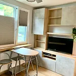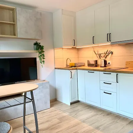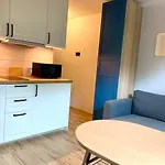 Sanktuarium im. Sw. Andrzeja Boboliからほんの0.6kmにあるPole Mokotowskie Apartament ワルシャワ は都市の景色を望むル-ムを提供します. 電子レンジ,電気ポット と冷蔵庫を設けたキチネットを提供しています.